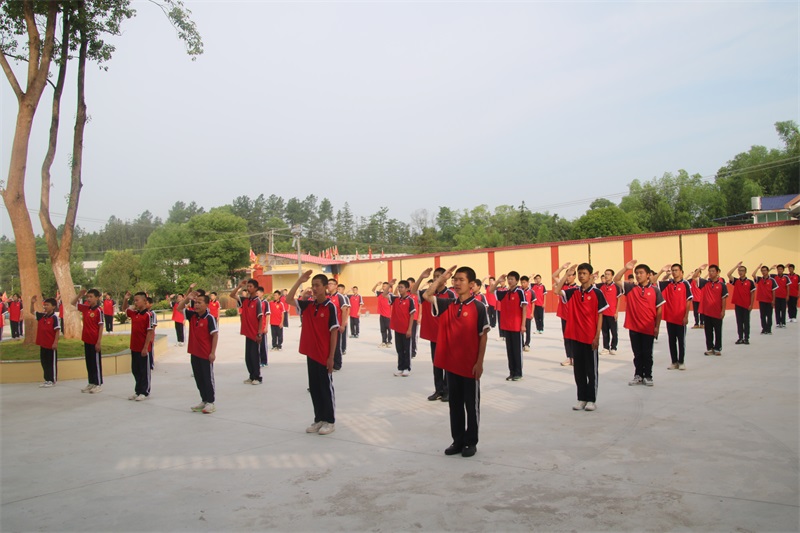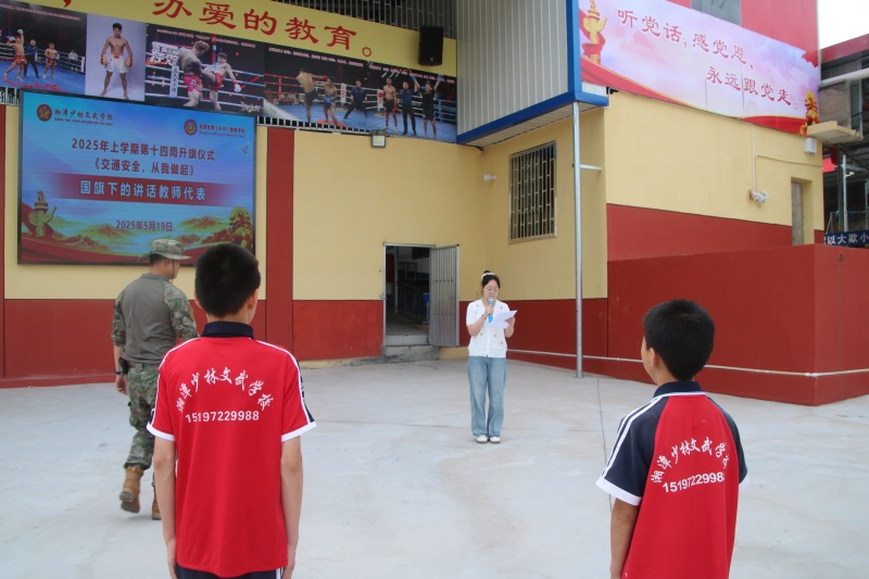 湘潭少林文武学校上学期第十四周以《交通安全,从我做起》主题式升旗仪式