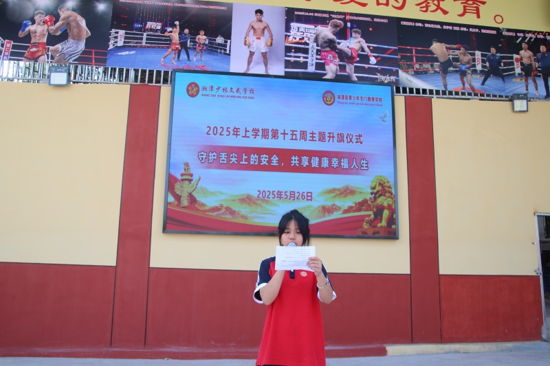 上学期第十五周以“守护舌尖上的安全,共享健康幸福人生”为主题的升旗仪式