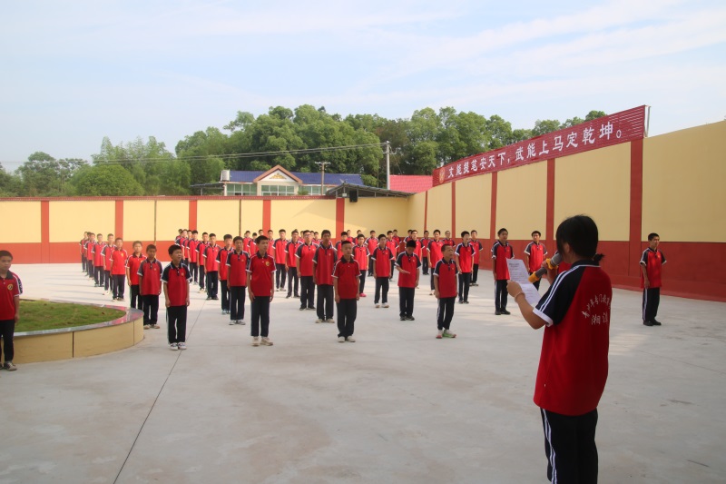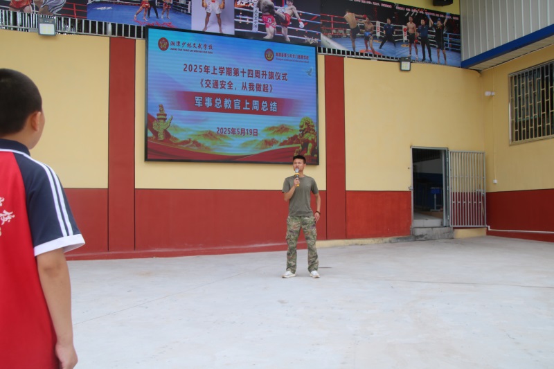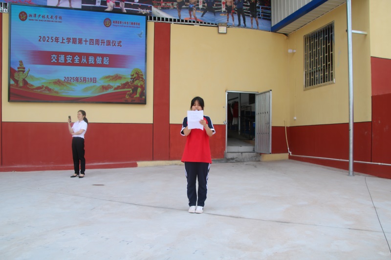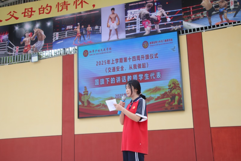 湘潭少林文武学校上学期第十四周以《交通安全,从我做起》主题式升旗仪式